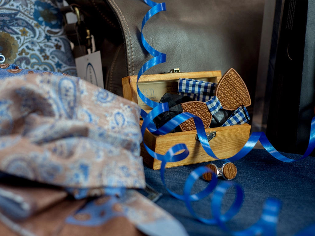 Schenken Sie etwas Besonderes: Unser umfangreiches Sortiment wird Sie überraschen. Von hochwertigen Lederwaren, wie Taschen und Geldbeutel finden Sie bei uns aber auch das i-Tüpfelchen für das perfekte Outfit. Krawatten, Fliegen, Manchettenknöpfe, Socken und auch Schuhe – wir lassen Ihr Shoppingherz höher schlagen.
