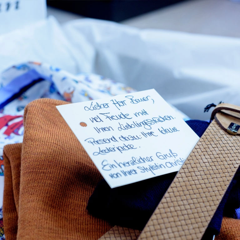Sie benötigen dringend ein frisches Outfit für einen speziellen Anlass oder möchten neue Stylingkombinationen testen? Ihr Modeberater weiß was zu tun ist und sendet Ihnen gerne eine Auswahl ausgewählter Outfits nach Hause und berät Sie in Sachen Dresscode und Kombination.